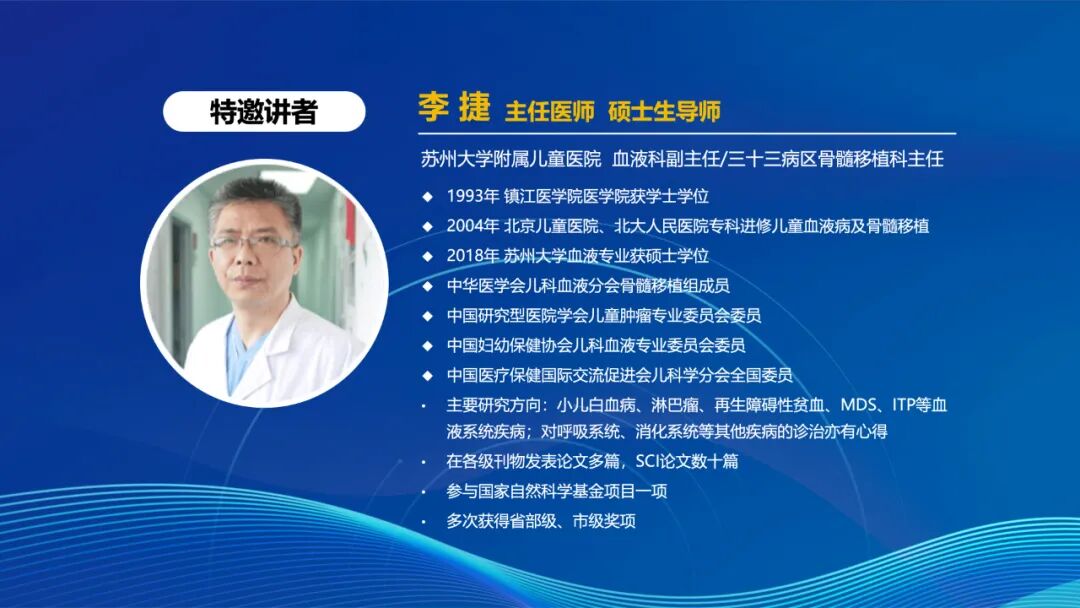 苏州大学附属儿童医院李捷教授讲解《HSCT后其他病毒管理》