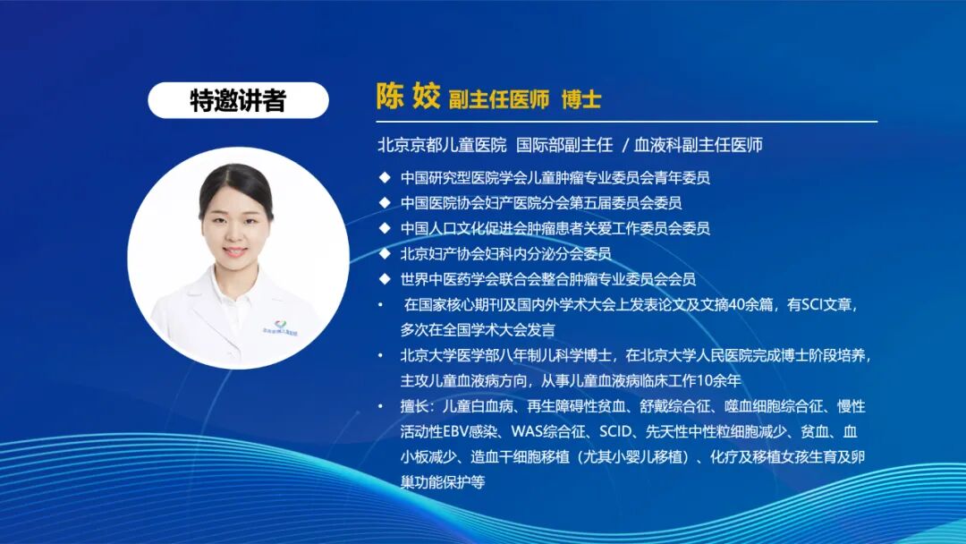 上海儿童医学中心陈静教授讲解《造血干细胞移植治疗PKD》