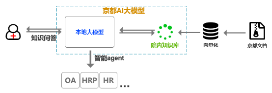 赋能和提升医院管理办公能力提升,构建京都智能知识库,通过自然语言查询和学习知识,提升不同职能岗位的能力,通过AI+Agent高效办公。