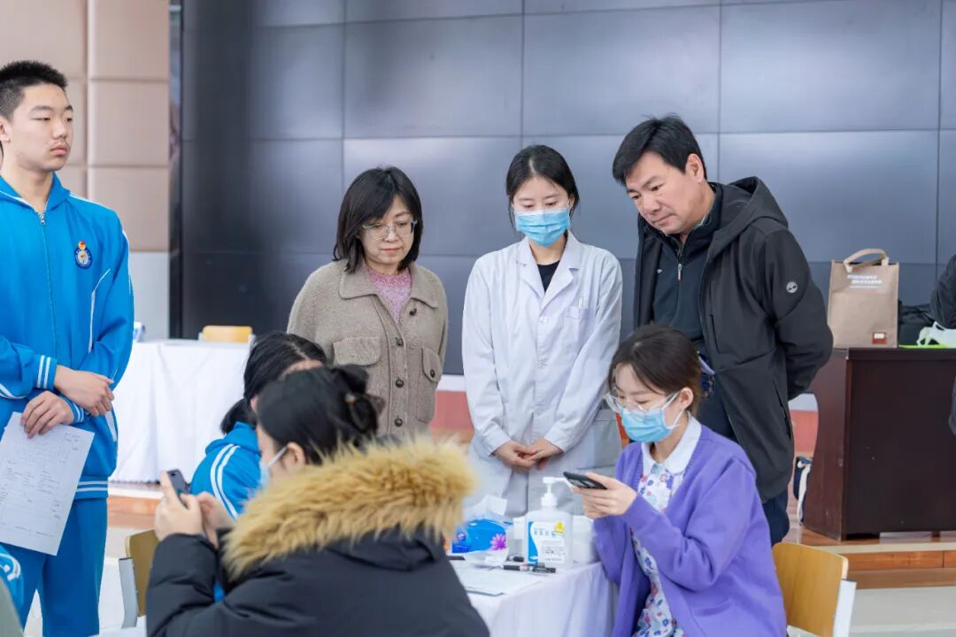 昌平区中小学卫生健康教育中心主任果立坡,宣传教育科主任李媛媛,宣传教育科李新艳老师、吴瑞秋老师、周建磊老师前往现场视察,北京京都儿童医院院长孙媛向果主任一行介绍了本次视力检测工作的落实情况和现场流程,表示将竭尽所能给孩子们提供全面、及时的视力检测服务。果主任一行对北京京都儿童医院对于此项目的高度重视给予肯定,对医护团队的专业服务给予了高度评价,并表示,此次筛查不仅帮助学生们了解自身视力状况,更增强了学生们的爱眼护眼意识。
